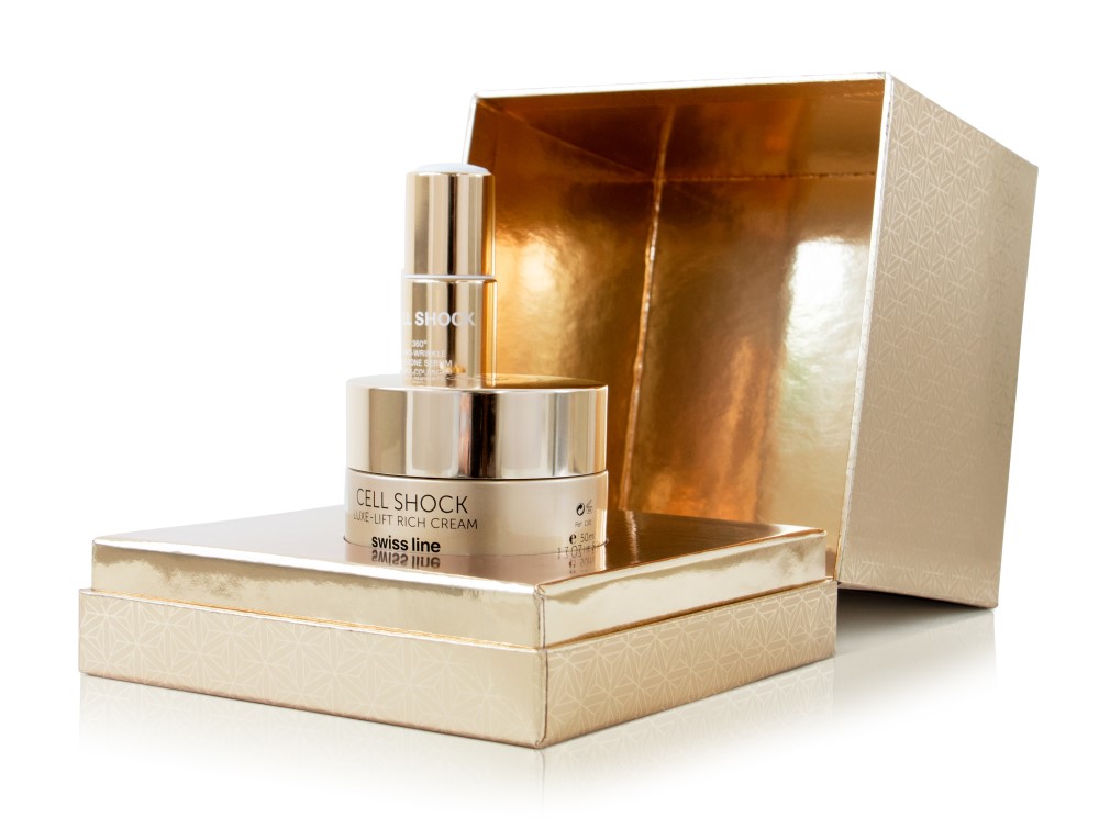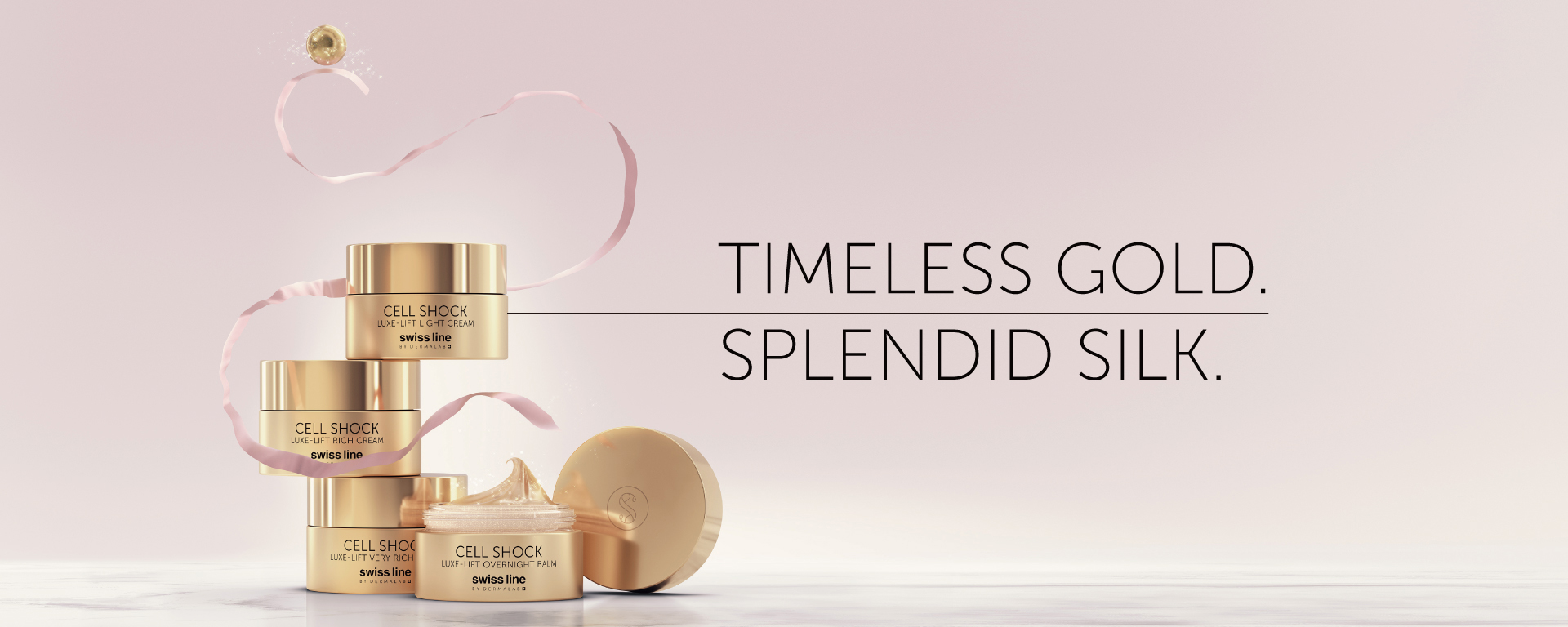 奢華活肌緊緻倍護黃金面霜配上瑞士膠原眼部精華,蘊含Swissline 2 大獨家傳奇成份:CELLACTEL 2 COMPLEX 「第2代活細胞緊緻複合元素」及TRIPLE-COLLAGEN COMPLEX 「三效骨膠原複合元素」,尊貴成份讓肌膚顯著提升及回復彈性。